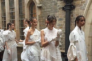 Think: pearls, bows, lace, glam tomboy silhouettes, and ethereally-cool girly-girl core.